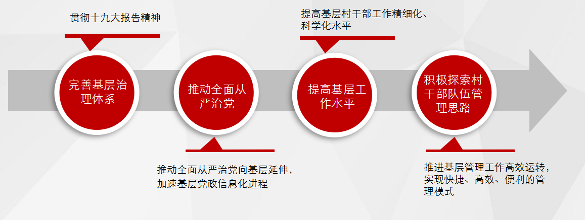 本项目将大力整合基层机构编制、干部人事档案、组织及人才等各方资源,基于基层干部考核管理实际需要和各级机构高效便捷易用的考量,实现基层干部考核的“一体化管理、系统性支撑”,推进县(市)区-乡镇(街道)-村(社区)三级层级管理、全面覆盖、动态监督、定量考核机制,促进基层治理工作的提质增效,满足人们对乡村美好生活的追求。